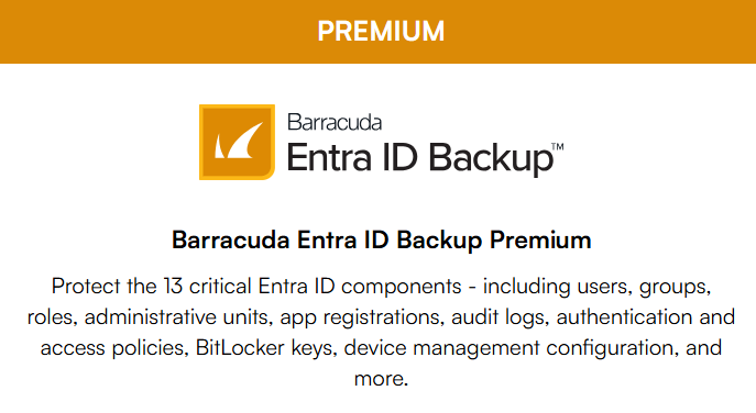 Barracuda Entra ID Backup Premium protects the most essential components