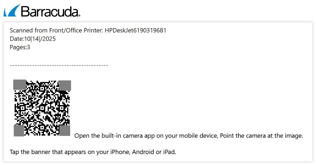 The attack starts with a phishing email containing very little text, often just a short instruction to scan the code using a mobile device.